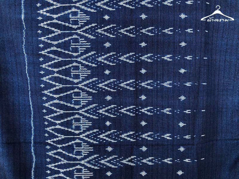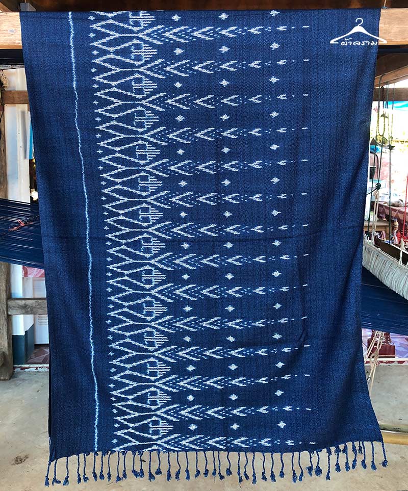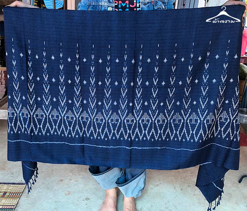 ผ้าย้อมคราม ผ้าคลุมไหล่ สกลนคร ลายนาคเกี้ยวสนใหญ่